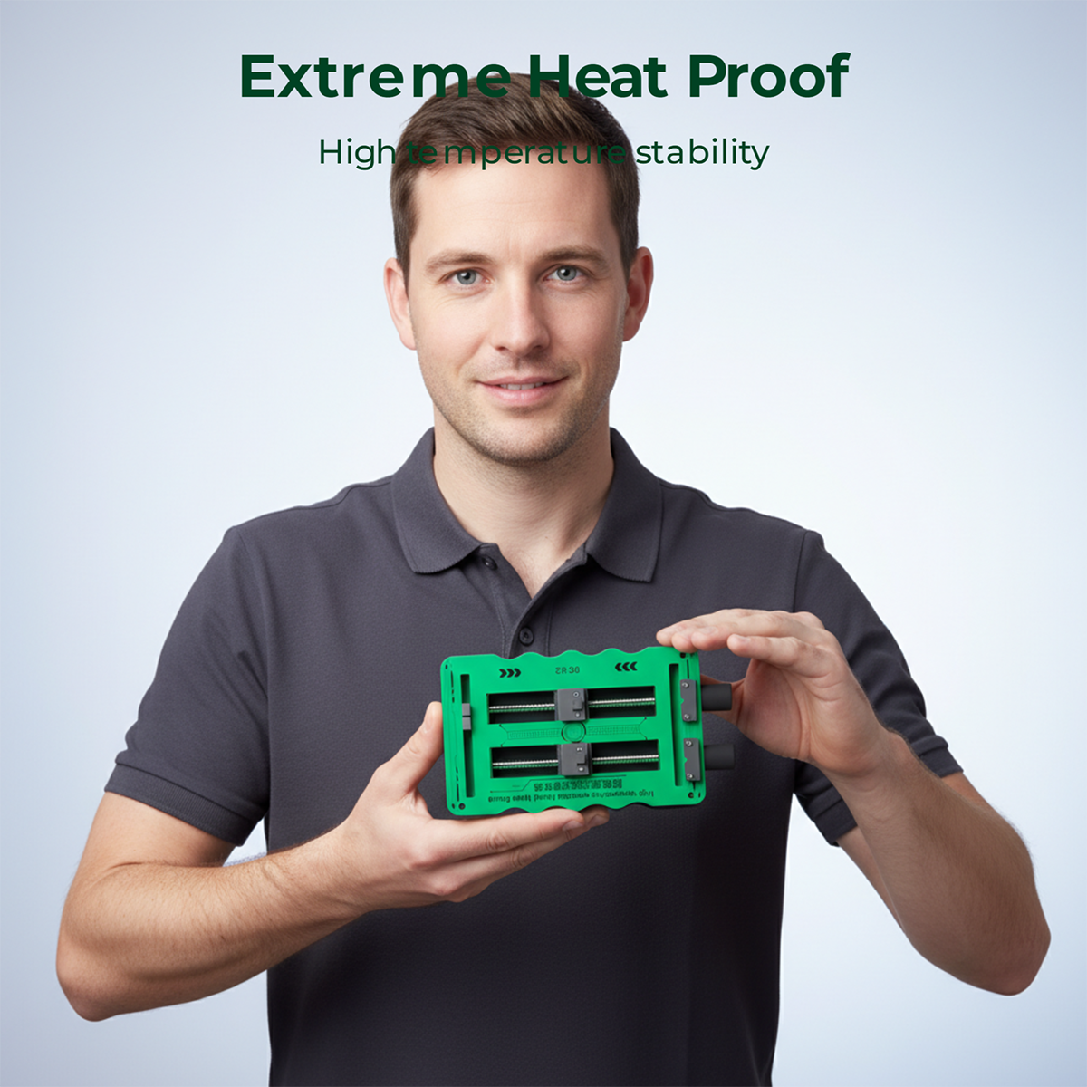 - The fixture is equipped with a high-temperature resistant glass panel as the core bearing part. This glass panel can withstand the high temperature radiated by hot air guns and electric soldering irons during repair, without deformation, discoloration, or cracking. At the same time, the smooth surface of the glass panel is not easy to adhere to solder, flux, and other impurities, and can be cleaned with a wipe after use, maintaining a clean and tidy working surface.